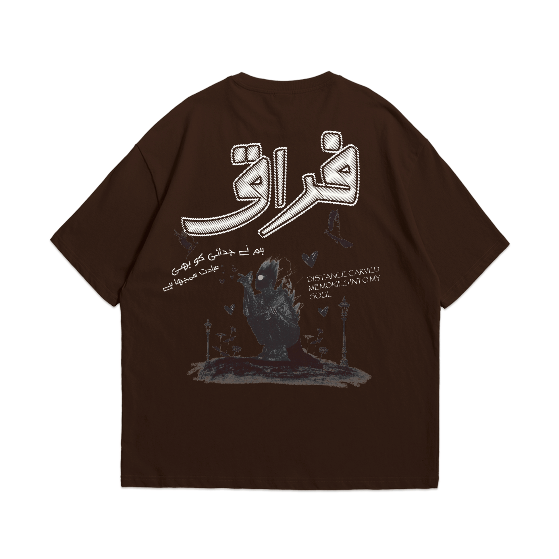 Firaaq means longing — and this T-shirt captures it in every thread. The earthy brown tone pairs with a powerful Urdu brush-style design printed boldly on the back, giving off Sufi-poetic vibes. Tailored in an oversized drop shoulder silhouette using a breathable cotton fabric (180–200 GSM), it’s a perfect fit for summer days and deep nights. ZOHBIL's signature logo adds minimal flair to the front.